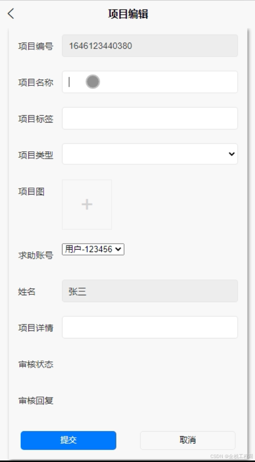 | 进入项目分类界面,点击“录入”按钮,未填写一个或者多个必填项,点击提交 | 提示“录入失败”,请填写必填项 | 一致 | |