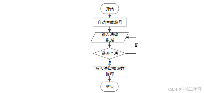 对于爱心捐赠小程序管理系统,需要随时添加所需要的法律知识数据信息,对于用户添加信息,需要根据添加界面,根据选框的内容进行填写所要添加的法律数据信息,信息输入完成后判断数据信息是否符合要求,符合要求则添加完成,用户所添加的信息不符合要求,则需要返回到第一步,重新输入数据信息,再进行判断操作,如图3-2所示。