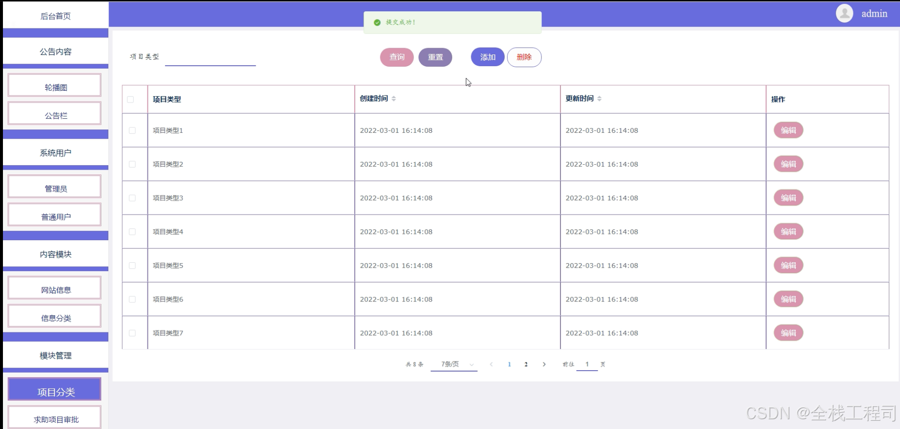 | 用例目的 | 测试系统操作者对项目分类相关信息进行管理的功能是否正常 | ||