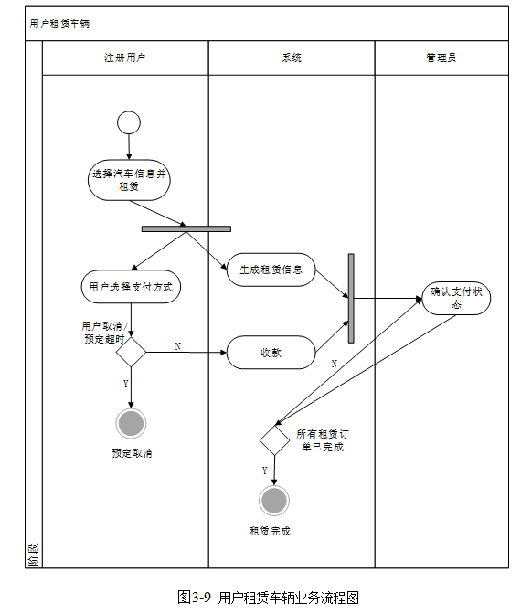 业务流程图既反映了内部业务间的相互联系,又反映了车辆租赁系统和信息流动情况。车辆租赁系统须支撑整个机构不同层面的多种职能,而各功能模块间存在着多种关联信息,组成一个有机整体,并针对车辆租赁系统信息自身特点和面临的现实条件,对系统进行业务流程图设计。系统通过流程的顺畅和高效,实现了车辆租赁系统交易需求的满足和系统管理的便捷,提升了系统的运行效率和用户体验。车辆租赁系统的业务流程如下图所示。
