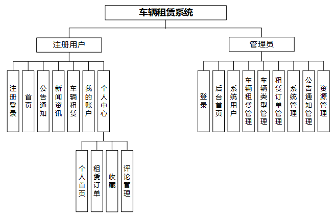 车辆租赁系统划分为了前端模块和后端模块两大部分。