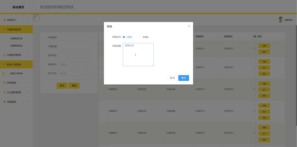 租赁订单管理:管理员可以查看所有租赁订单的详细信息,并进行审核。支持搜索、查询及删除订单,以确保租赁流程的规范化和安全性。