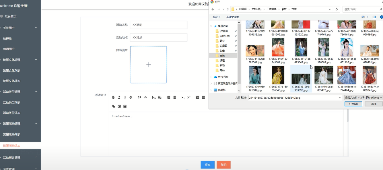 6.汉服活动管理:组织、编辑和发布各类汉服活动,管理活动详情、参与者名单和反馈意见,确保活动顺利进行。