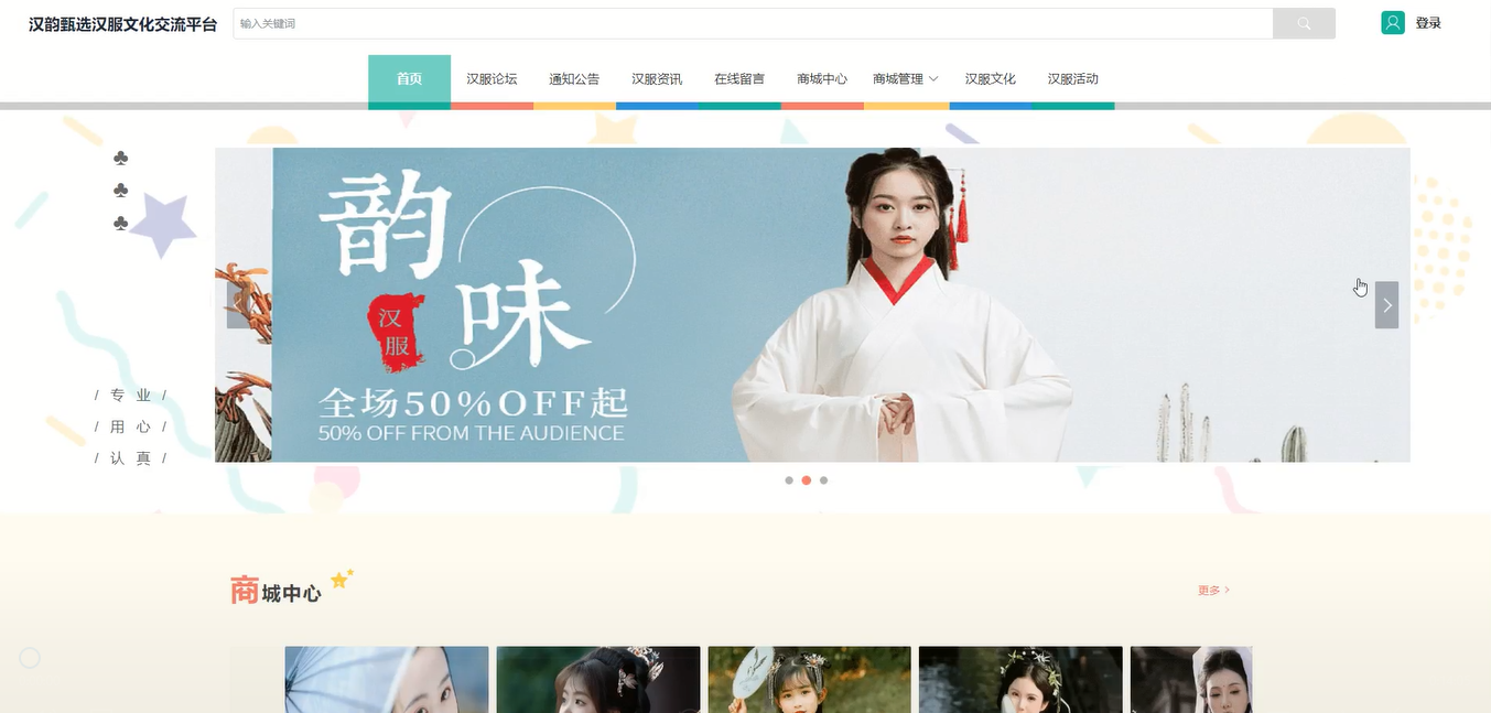 在这样的背景下,“汉韵甄选”汉服文化交流平台应运而生。该平台基于Vue.js前端框架和Java语言结合Express框架构建,旨在利用现代化的互联网技术,打造一个集资讯获取、论坛交流、商城购物、活动参与于一体的综合性汉服文化交流平台。通过这种方式,平台不仅能够更好地传播汉服文化,还能增强用户之间的互动,形成一个活跃的线上社区。