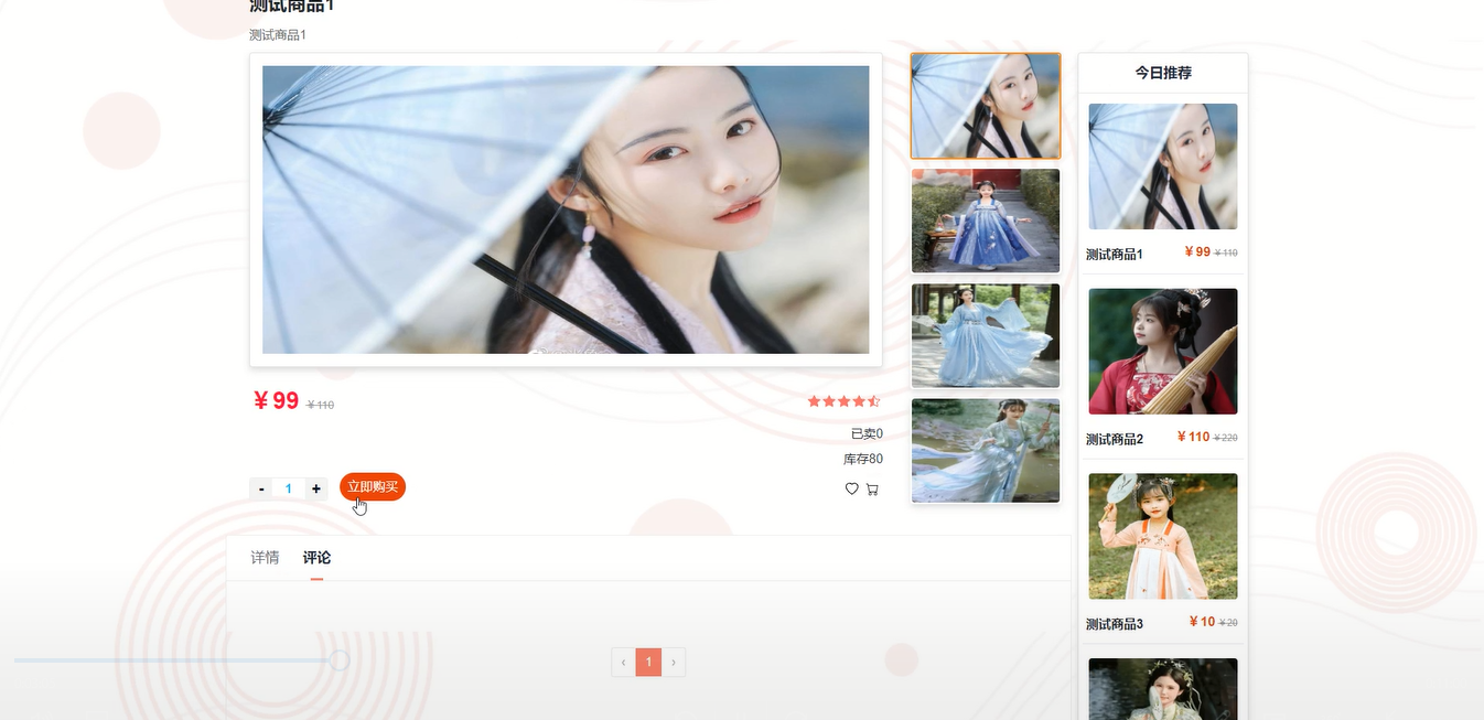 6.商城中心:一个展示和销售各类汉服及相关配饰的在线购物区域,用户可以浏览商品详情、查看评价并进行购买。