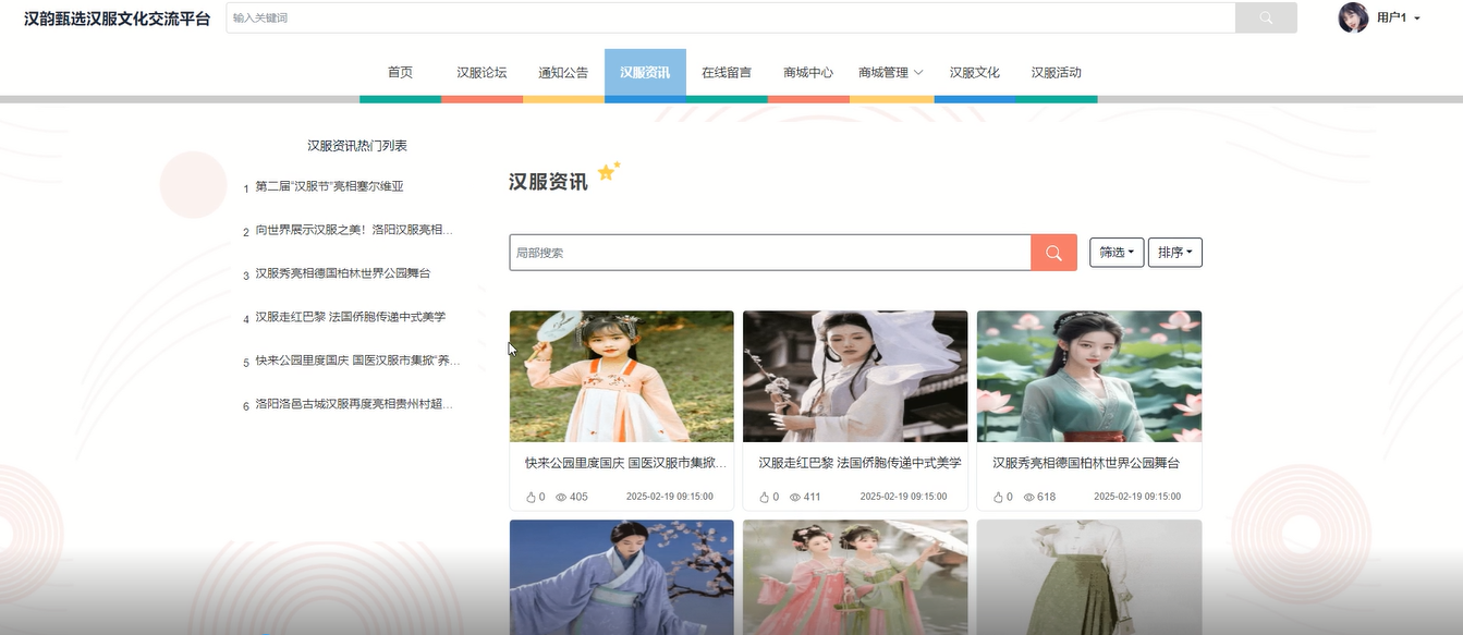 用户体验提升:现代用户对信息获取和社交互动有着更高的要求。“汉韵甄选”平台通过先进的前端技术(如Vue.js)和友好的用户界面设计,提供了一个流畅、便捷的使用体验。无论是注册登录、浏览资讯、参与讨论还是购买商品,用户都能享受到高效、直观的操作流程,增强了用户的粘性和满意度。