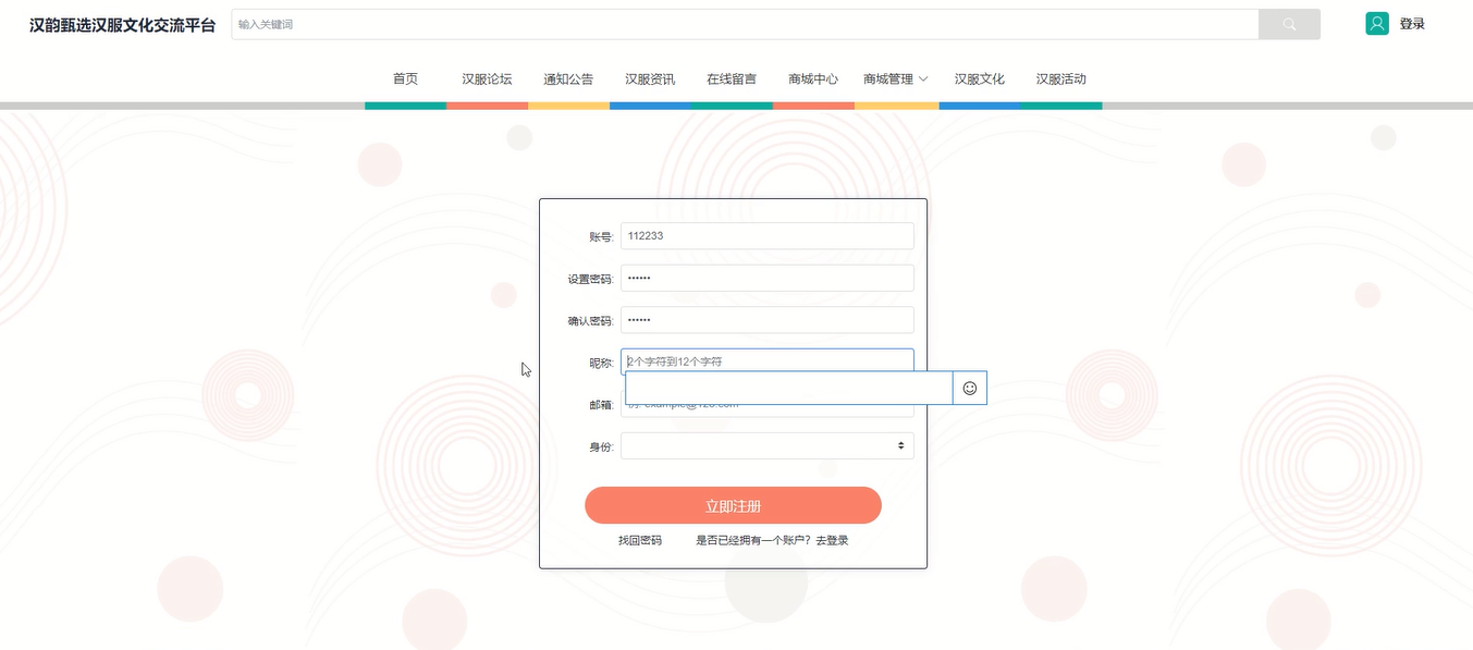 Hanyun Selection "is a Hanfu cultural exchange platform built on the Vue.js front-end framework and B/S (Browser/Server) mode. The back-end is implemented using Java language and Express framework. The platform aims to promote the spread and exchange of Chinese clothing culture through Internet technology, and provide a space for Chinese clothing lovers to learn, share and interact. The front-end utilizes the powerful componentization features and responsive design of Vue.js to ensure a smooth user interface experience and high customization. The backend provides stable and efficient service support through the powerful features of the Java language and the flexibility of the Express framework.
