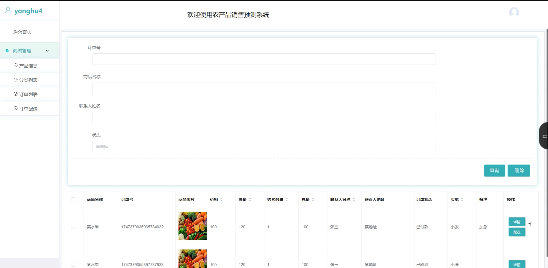 订单配送:查看订单发货与收货状态。