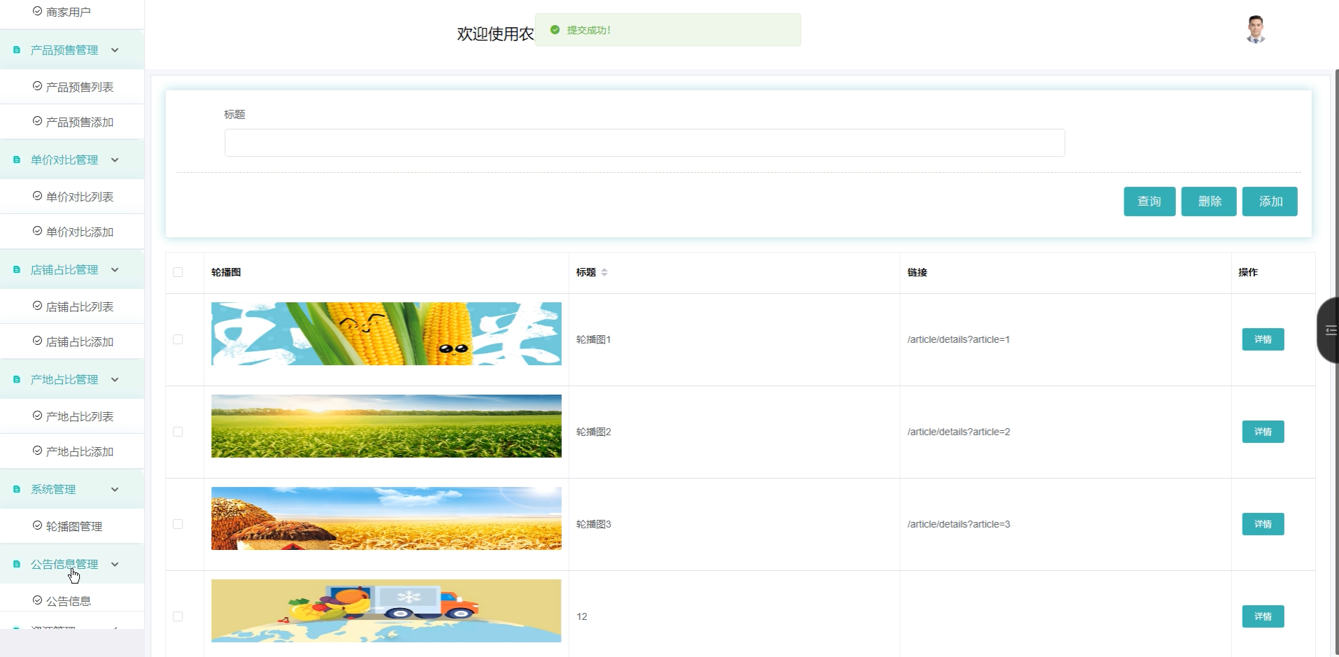 系统管理(轮播图管理):配置首页轮播图展示内容,提升系统美观与信息传达。