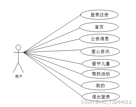 通过2.3功能的分析,得出了本社区留守儿童帮扶系统的用例图: