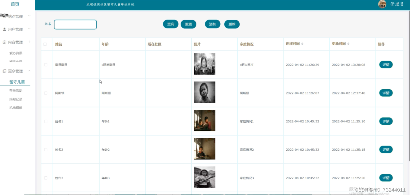 | 预期结果 | 可以查看到所有留守儿童信息 |
