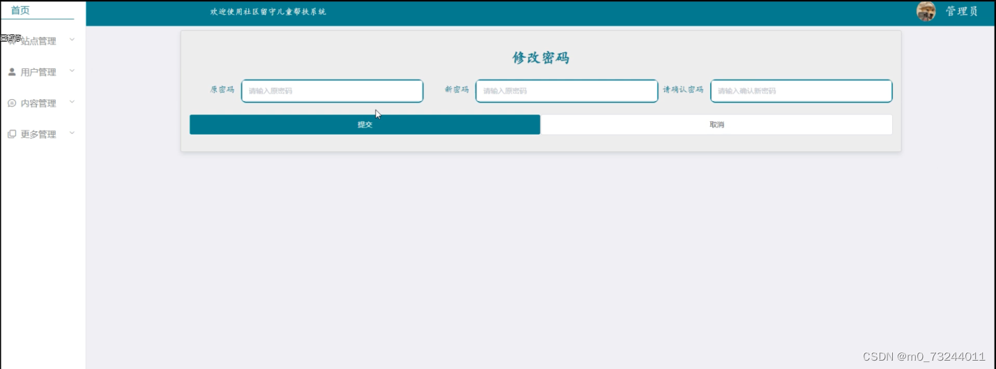 | 测试流程 | 1)管理员密码修改并完成填写。 2)点击进行提交。 |