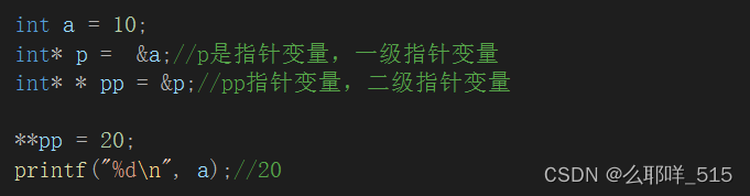 二级指针是用来存放一级指针变量的地址