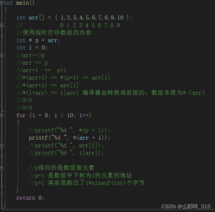 p+i 是数组中下标为i的元素的地址