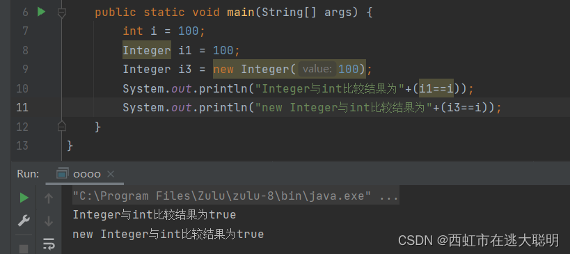Integer / new Integer == int 只要两个值相等 结果就为true 包装类与基本类型进行比较运算会先将包装类自动拆箱成基本数据类型 然后进行比较