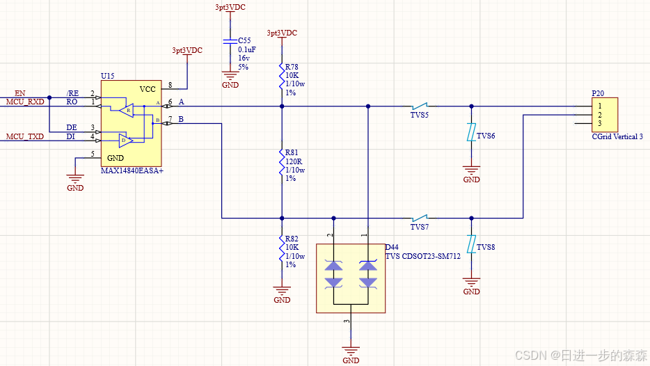 差分信号。逻辑1(高电平):两根信号线(A+和B-)的电压差在 +2V~+6V 之间 ;逻辑0(低电平):两根信号线(A+和B-)的电压差在 -2V~-6V 之间。差分信号具有很强的抗干扰能力。当噪声出现时,由于噪声是等值且同时作用在两个信号线上,所以噪声对两个信号的影响是一样的,能有效抑制电磁干扰(EMI)。这是因为两根线靠得很近,信号幅值相等,所以与地线的耦合电磁场的幅值也相等,但信号极性相反,这就像两个相同大小但方向相反的矢量,他们会相互抵消。
