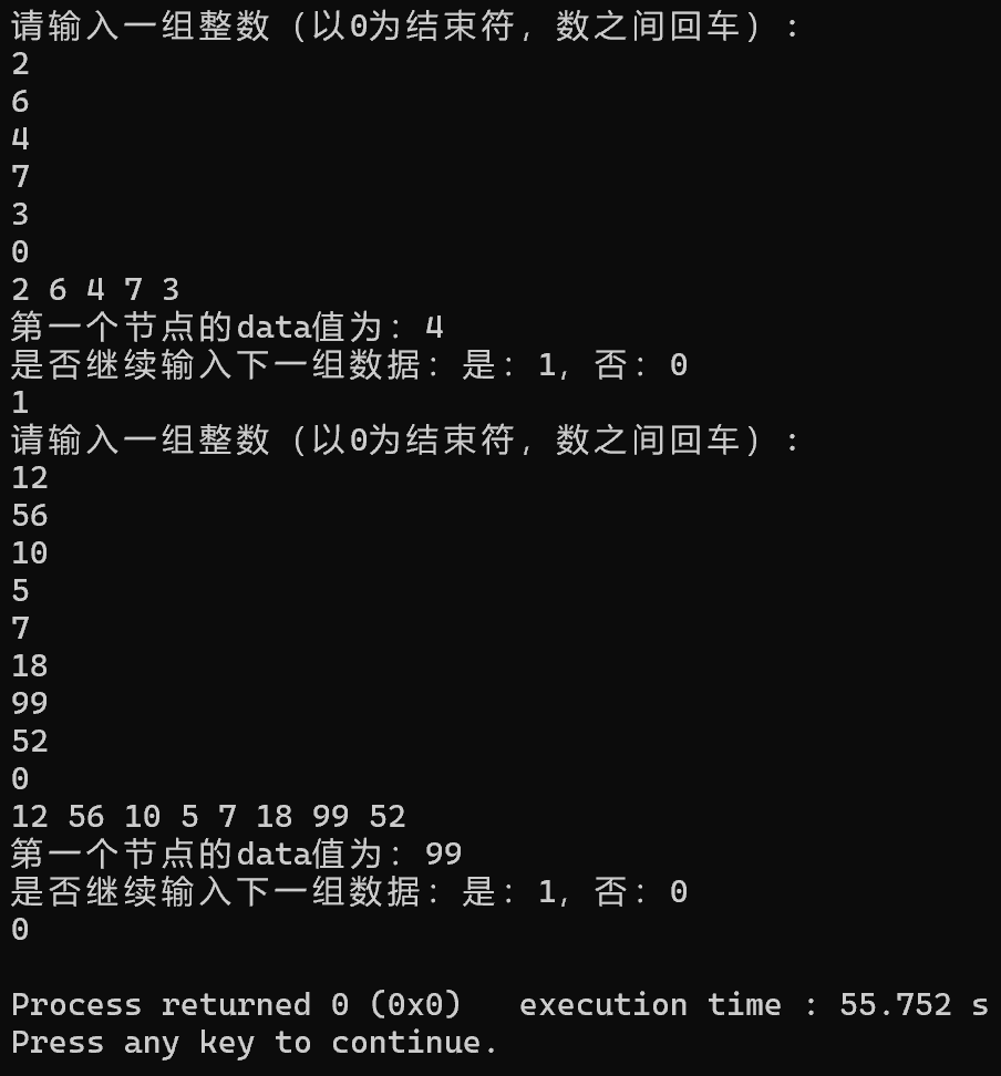 输入数据(设为整型)建立单链表,并求相邻两节点data值之和为最大的第一节点