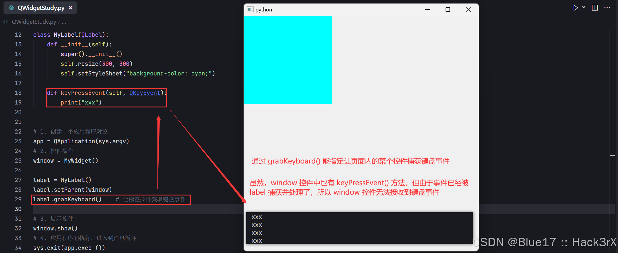 label.grabKeyboard() # 让标签控件获取键盘事件