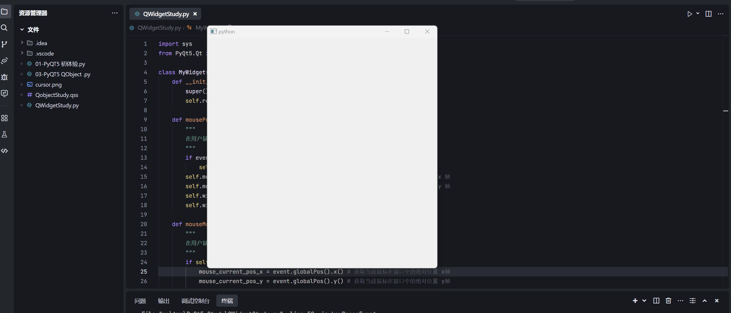 mouse_current_pos_y = event.globalPos().y() # 获取当前鼠标在窗口中的绝对位置 y轴