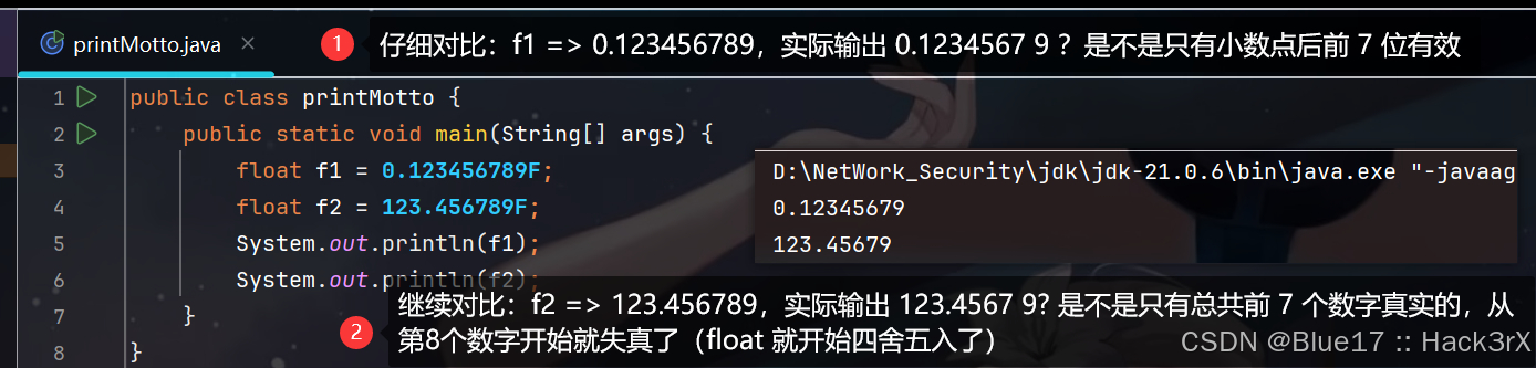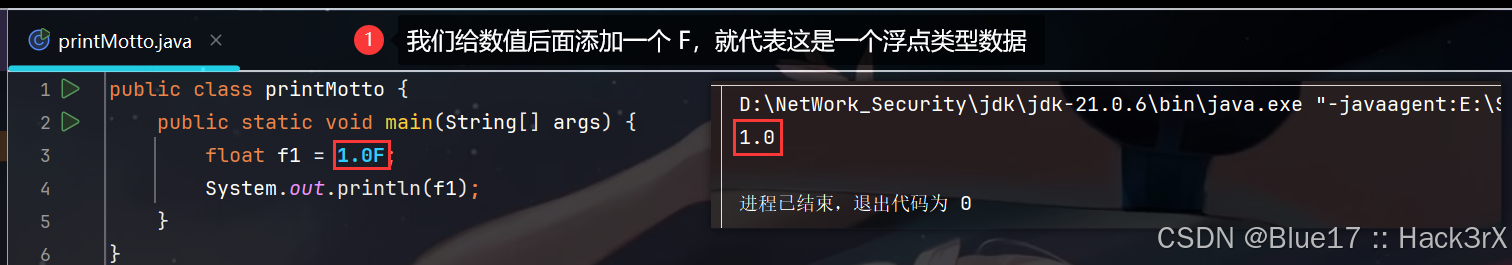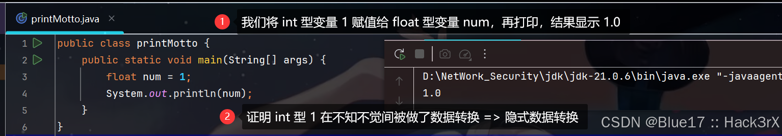 如上,通过打印的结果可以发现,Java 自动将 int 型的 1 转换成了 float 型的 1.0 并打印。