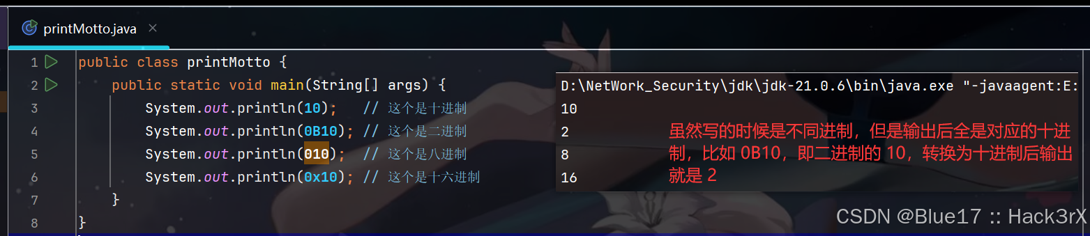 下面是一个进制的示例(以笔者目前编程来看,十进制用的最多,其它进制你知道有以及咋表达就行):