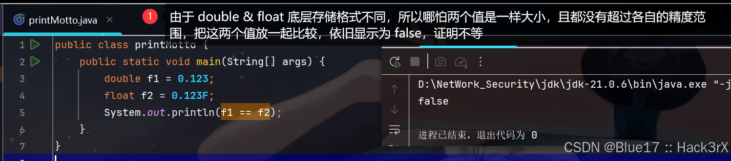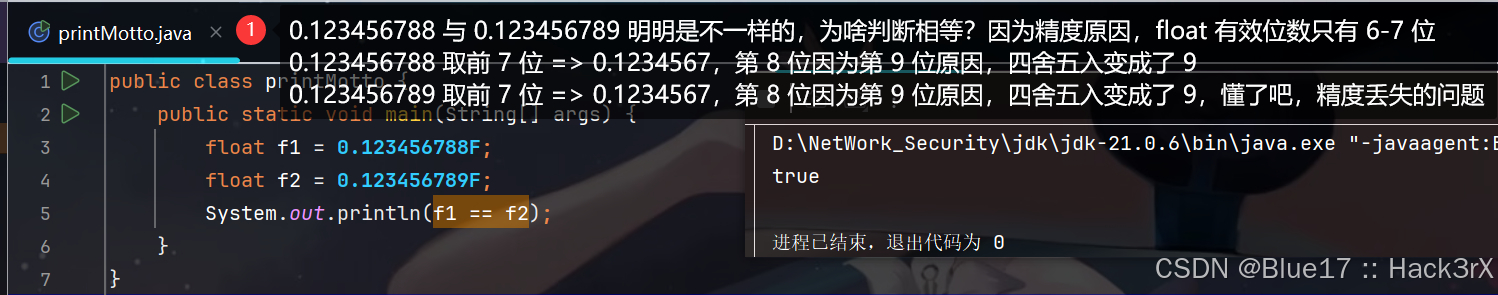 将 double 类型的值强行赋值给 float 类型会有精度丢失的风险。(涉及底层原理)