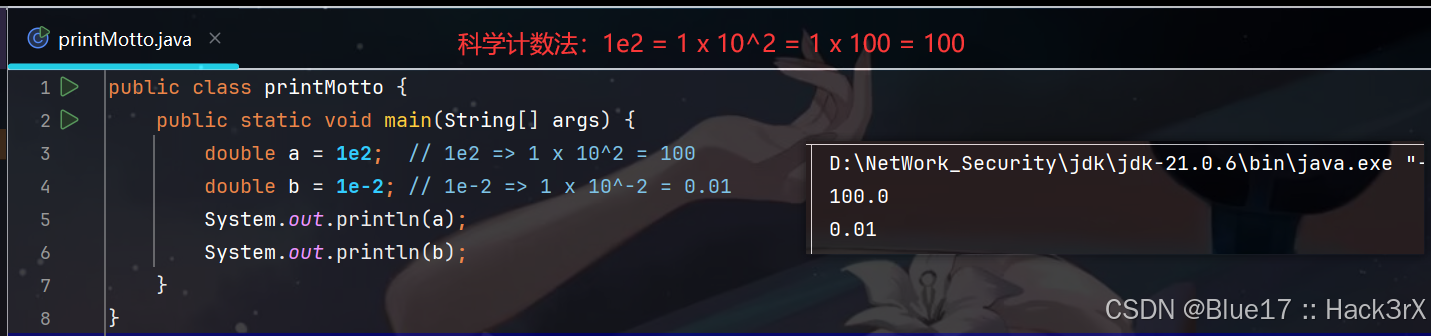 十进制形式在前面的案例中已经演示很多次了,那么笔者本节就演示一下科学计数法形式的使用: