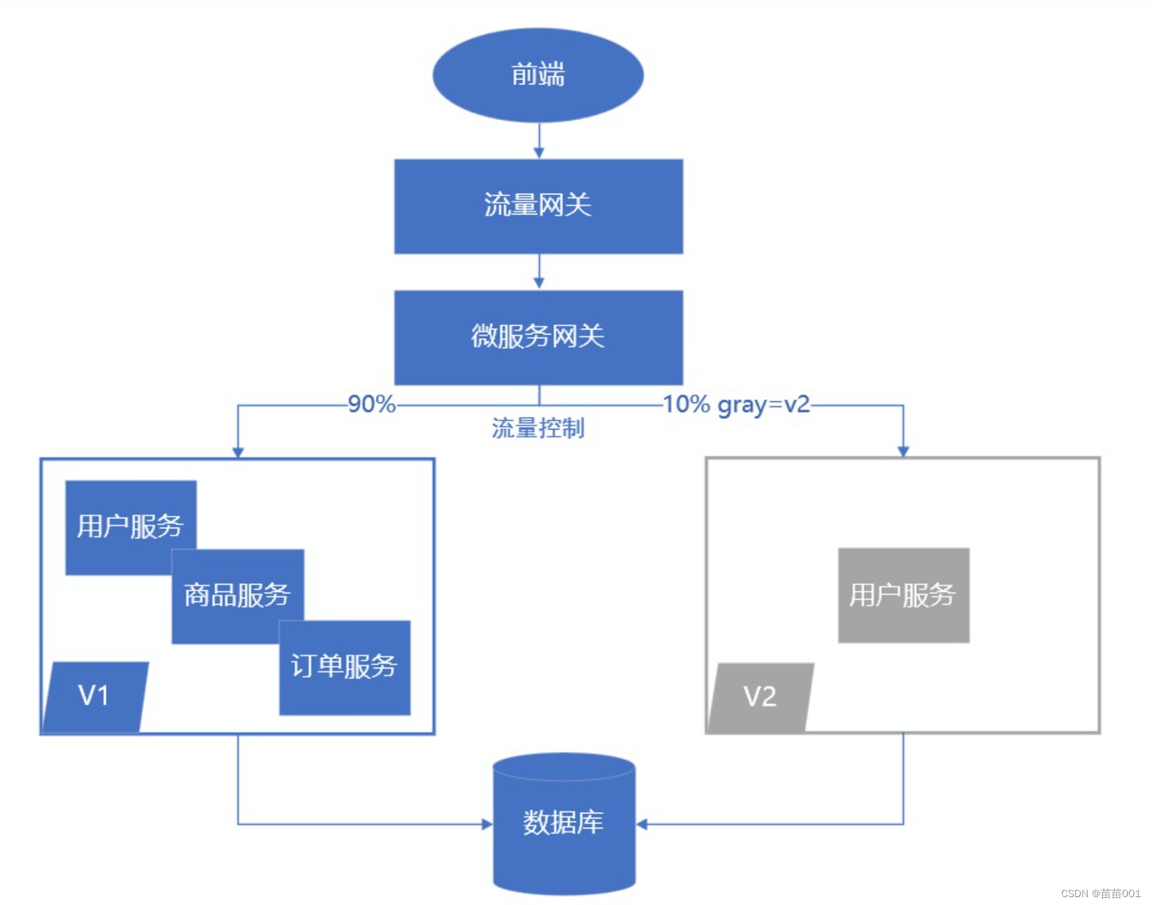根据请求的流量,将流量分流,分一小部分转至新版本的使用,这个新版本即为灰度发布方案,灰度的使用通过后,会通过调整新版本的使用流量进行融合