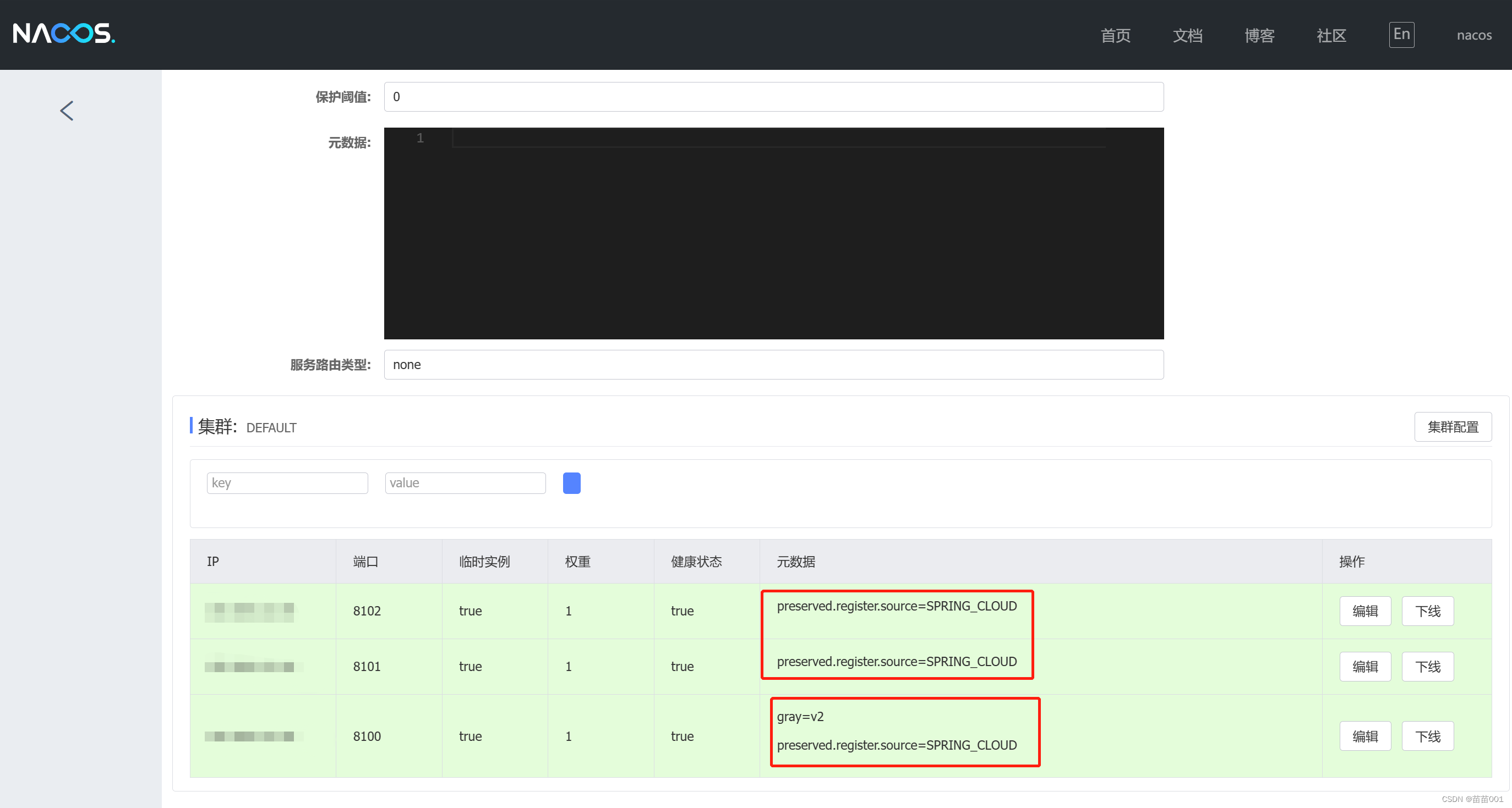 通过Nacos作为注册中心为灰度服务设置元数据信息,添加gray=v2的元数据来表明当前服务是灰度服务,未添加这个元数据标识的服务为未更新的旧服务
