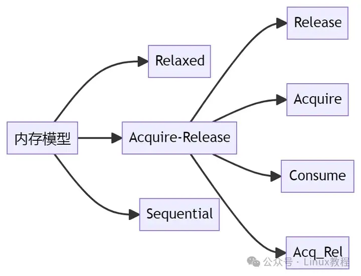 - • Acquire-Release模型(memory_order_consume memory_order_acquire memory_order_release memory_order_acq_rel)