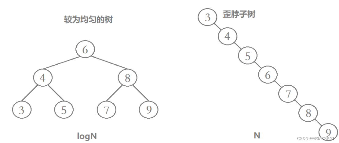 当二叉搜索树的高度等于节点数,则查找速度就是O(n)