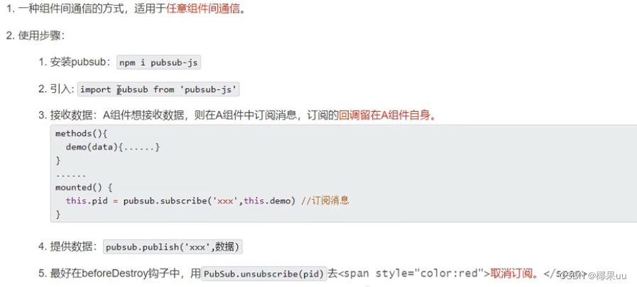 这玩意儿用的不多,和全局事件总线写法差不多,但是全局事件总线更好,因为是在Vue身上操作,但是这个的话要引入第三方库,库有很多,比如pubsub-js