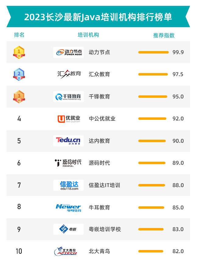 以上就是2023年长沙Java培训机构测评前十的榜单,榜单的作用是为了给大家提供一份选择参考,具体的决定还是要到各个校区去试听、考察,最终确定下来,Java培训学费不是小数目,所以希望大家谨慎对待,最后挑选出适合自己的培训机构。