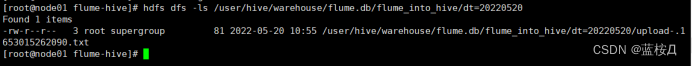 load data inpath '/user/hive/warehouse/flume.db/flume_into_hive/dt=20220520' into table flume_into_hive partition(dt=20220520);