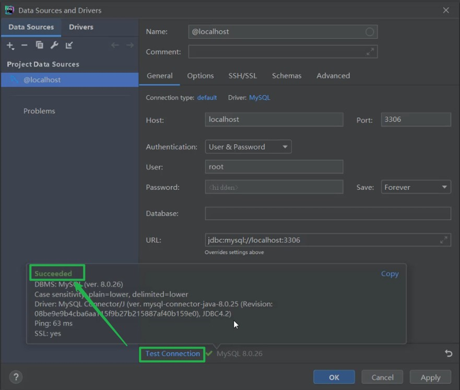 配置以及驱动jar包下载完毕之后,就可以点击 "Test Connection" 就可以测试,是否可以连接