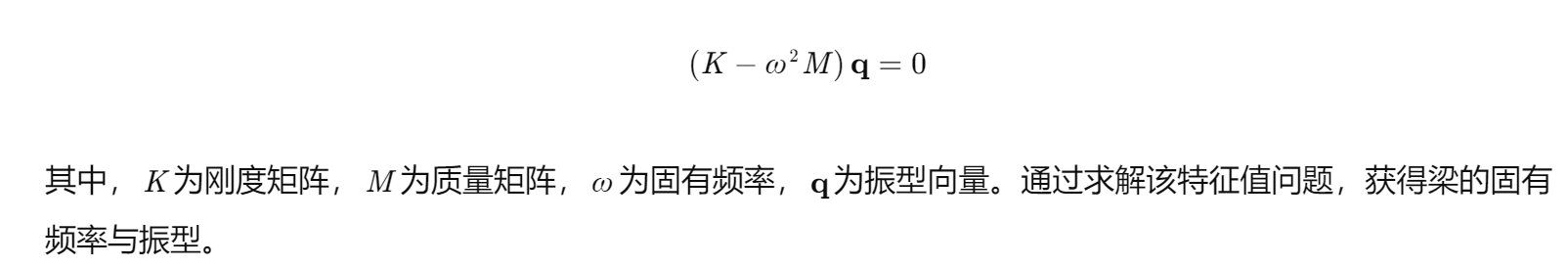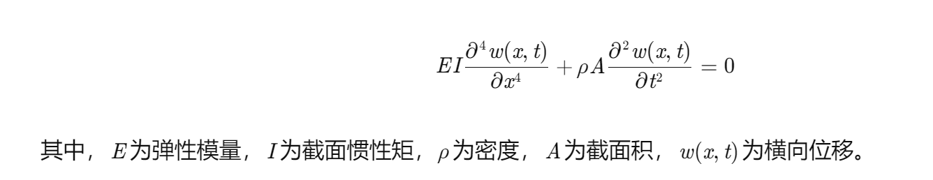 Euler-Bernoulli梁理论假设梁在弯曲过程中横截面保持平面且垂直于中性轴,忽略剪切变形与转动惯量的影响。该理论下,梁的自由振动可通过四阶偏微分方程描述: