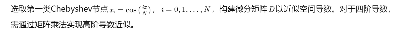- 空间离散:在计算域内选取Chebyshev节点,将连续问题离散为节点上的代数方程。