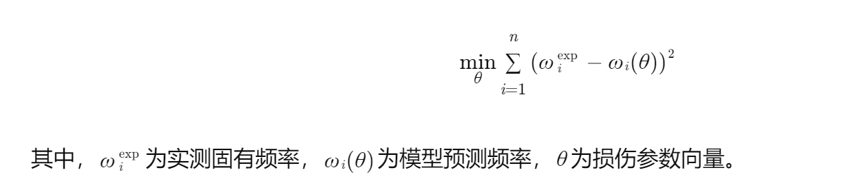 反问题旨在根据实测固有频率反推损伤参数(如裂纹位置、刚度退化等)。建立参数化模型,将损伤参数作为未知量,构建目标函数: