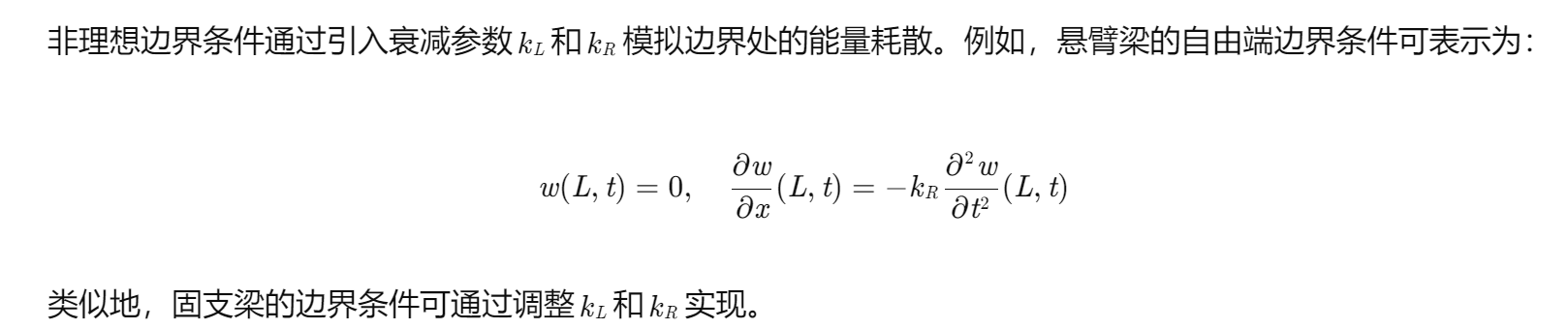 通过修正微分矩阵的最后几行,将非理想边界条件融入方程组。例如,对于悬臂梁的自由端,修正后的微分矩阵需满足位移与斜率为零的条件,同时引入衰减项。