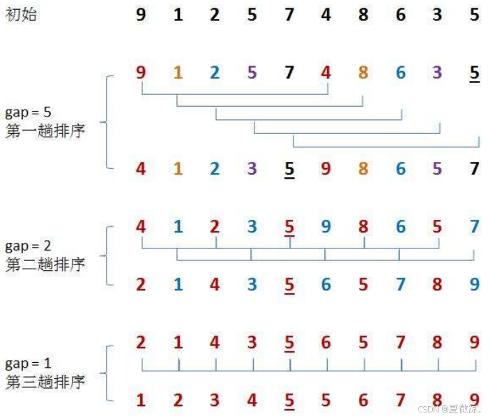 2. 当gap > 1时都是预排序,目的是让数组更接近于有序。当gap == 1时,数组已经接近有序的了,这样就 会很快。这样整体而言,可以达到优化的效果。我们实现后可以进行性能测试的对比。