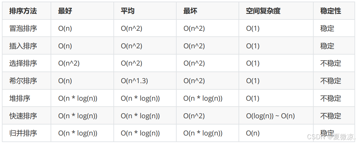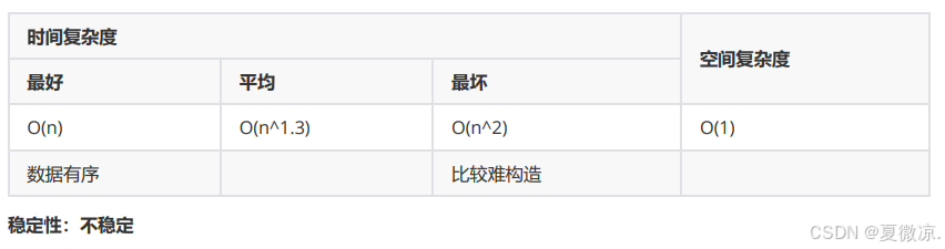 3. 希尔排序的时间复杂度不好计算,因为gap的取值方法很多,导致很难去计算,因此在好些书中给出的希尔排序的时间复杂度都不固定
