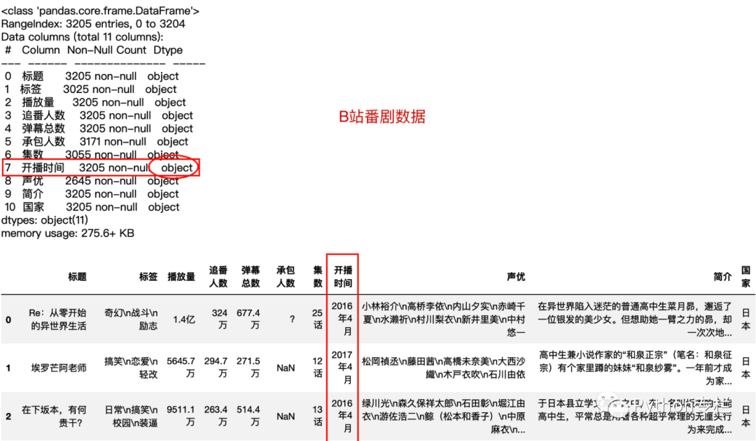 但是有时候我们看到的数据明明都是日期格式,怎么就偏偏不是datetime64[ns]类型呢?而显示的是object类型,比如下面你看到的数据