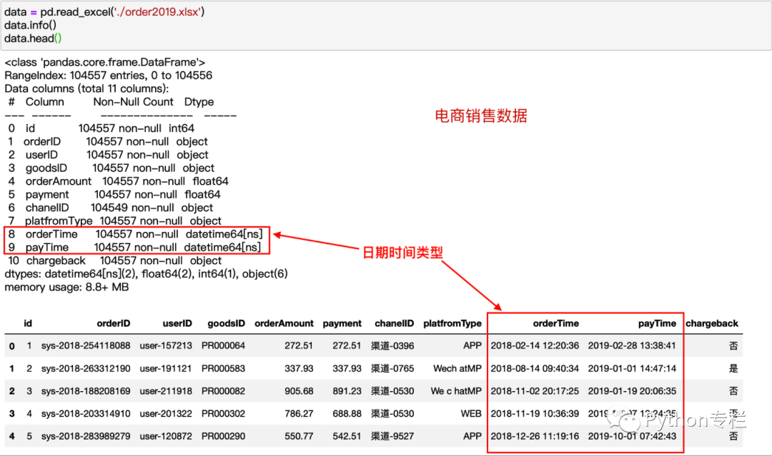 首先看看下面这张图,如果看到数据的如果类型是datetime64[ns]说明就是DataFrame中的日期时间类型。