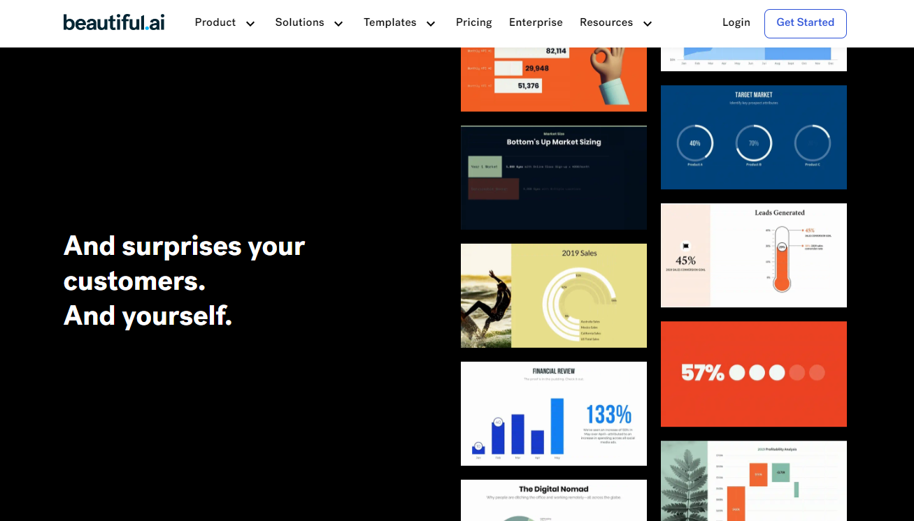 Beautiful.ai特别适合需要制作高质量、专业外观PPT的用户,如企业高管、销售人员、市场营销团队等。它也非常适合初学者,因为即使没有设计经验也能制作出优秀的演示文稿。