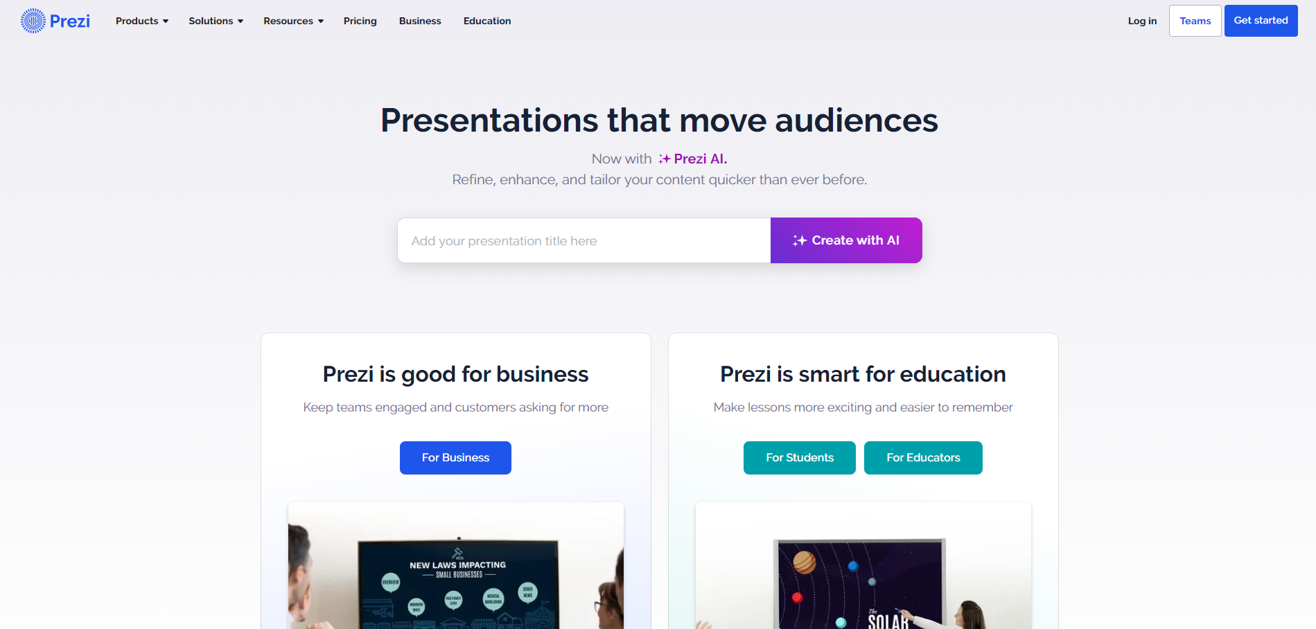 Prezi是一款独具特色的演示工具,以其非线性、缩放式的演示方式而闻名。最近,Prezi引入了AI功能,进一步增强了其创作能力,使得用户能更轻松地制作出吸引眼球的演示文稿。