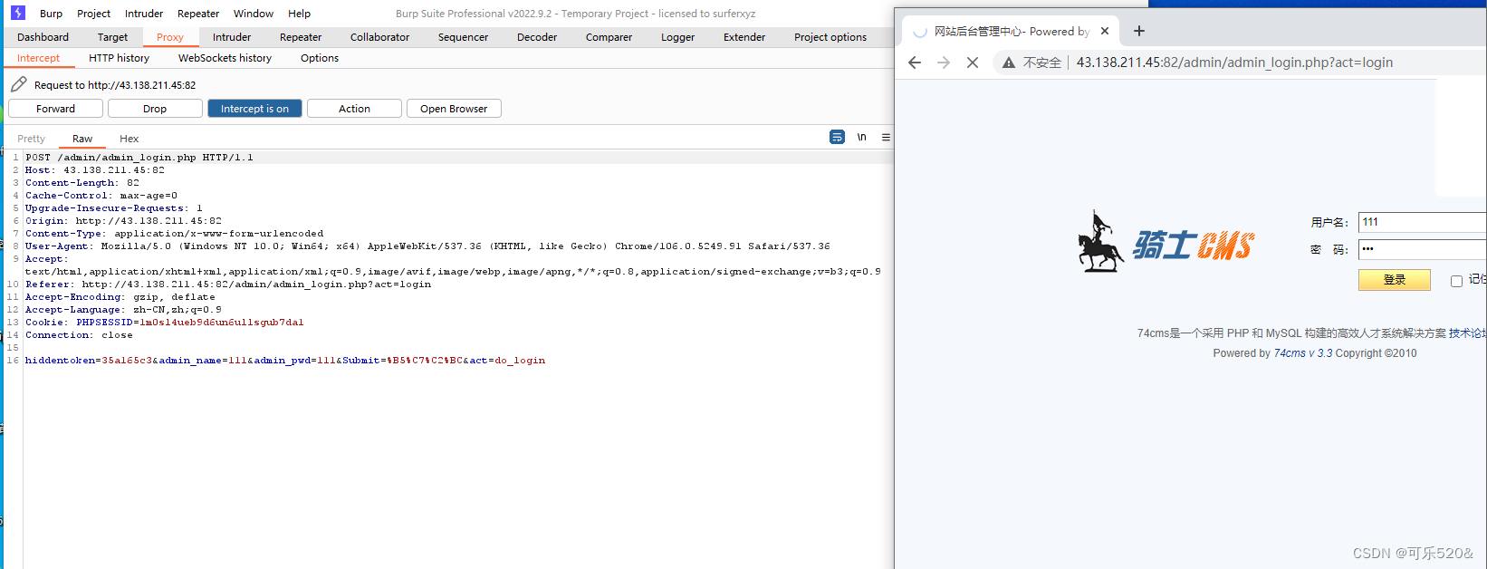 1.打开Burpsuite和http://43.138.211.45:82的登录后台