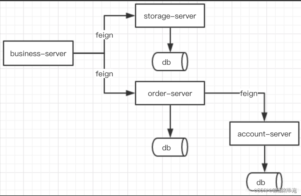 业务逻辑是经典的下订单、扣余额、减库存流程。根据模块划分为三个独立的服务,且分别连接对应的数据库