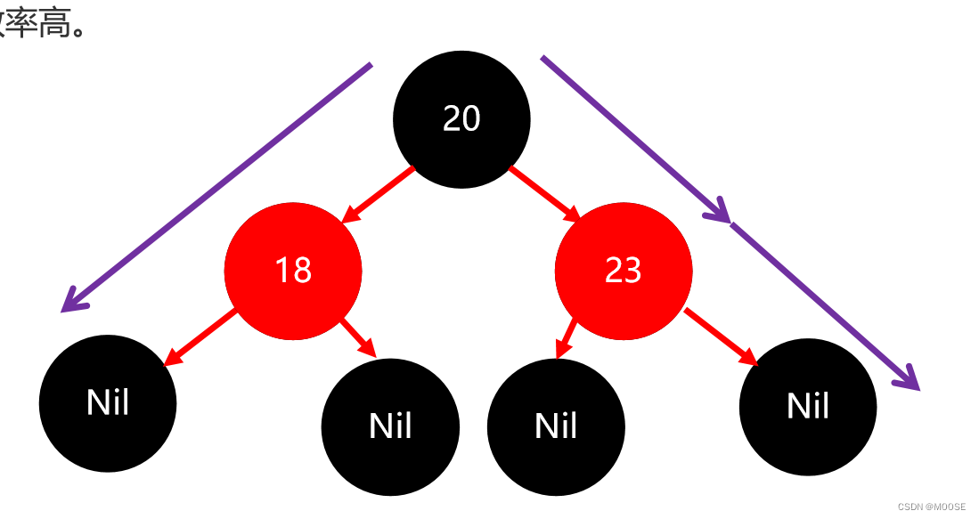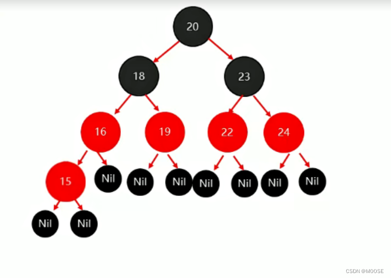 3.如果一个节点没有子节点或者父节点,则该节点相应的指针属性值为Nil,这些Nil视为叶节点,每个叶节点是黑色的