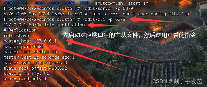 (2)启动哨兵-->启动哨兵的前提是先启动三个不同端口的reids: