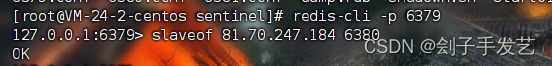 (5)进入指定的从机中,执行主从挂载命令:(下面的图片是:进入6379端口的redis,并将其挂载到6380端口中的redis)(6381端口的挂载和下面的步骤一致,唯一不同的就是进入的是6381的客户端)